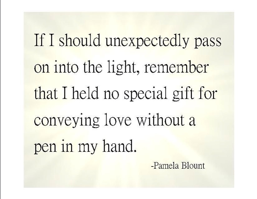 Without a Pen in My Hand Written by Pam. Pamela. Pammy Share this: Click to share on X (Opens in new window) X Click to share on Facebook (Opens in new window) Facebook Like Loading... Related Leave a comment Cancel reply Δ